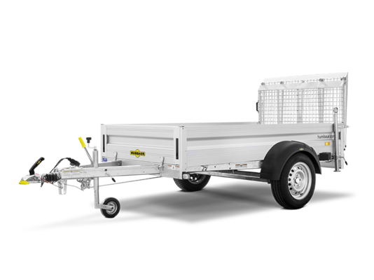 La remorque HA 132513 ÜFW est dotée d'un pont arrière et d'un châssis en aluminium anodisé offrant une stabilité exceptionnelle. Son sol résistant à l'eau et sa capacité de charge de 400 kg par anneau, certifiée par Dekra, en font un choix fiable et sécuritaire. Son design polyvalent permet le transport de différents équipements tels que motos, vélos et outils de jardinage.