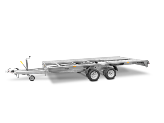 Notre nouveau FTK vous permet de transporter votre voiture de façon sûre et confortable. Notre FTK, premier modèle de la gamme offre tous les avantages du porte- voiture basculant. Cette remorque est idéale pour les ateliers de réparation, ou le particulier possédant une petite voiture telle que la Smart et la Golf. Ces avantages sont une première sur un modèle basique. Le pont basculant à l'aide de vérins, permet un chargement facile sur les rails revêtus d'acier gauffré. Vous pouvez également faciliter encore plus le chargement en y ajoutant les options basculement hydraulique et treuil. Vous trouverez la remorque adaptée à vos besoins parmi nos 4 variantes, ayant une charge utile jusqu' à 2 Tonnes (modèles 2 essieux), et différentes dimensions. La conception très étudiée de ce modèle pour optimiser la surface utile, assure un angle faible de montée. Les composants galvanisés ainsi que les diverses options concernant la sécurité de chargement confirment la qualité Humbaur jusque dans le moindre détail.